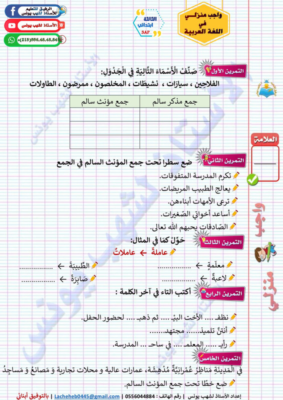 أقدم لكم الواجب المنزلي للمقطع الثاني الوحدة الثانية في اللغة العربية للسنة الثالثة ابتدائي